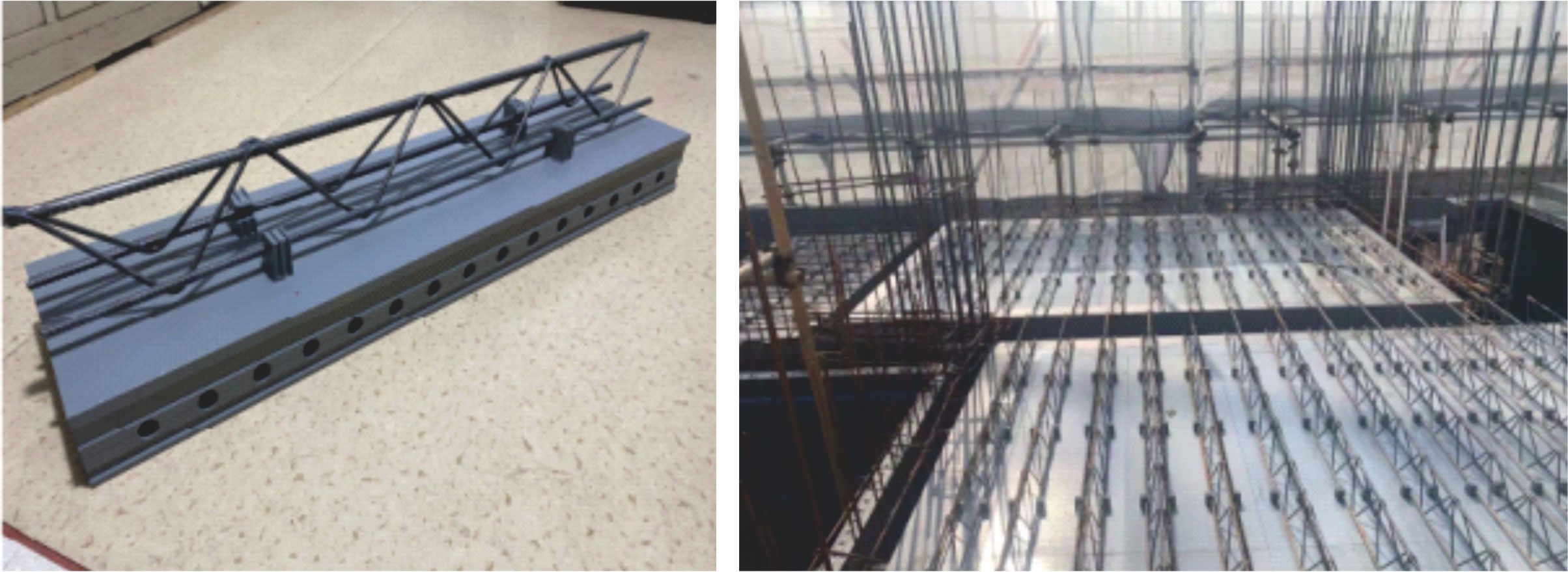 底板上部析架最小間隙55mm,增加了現(xiàn)場預埋管線的允許直徑,方便現(xiàn)場管線預埋并降低了預埋成本 |