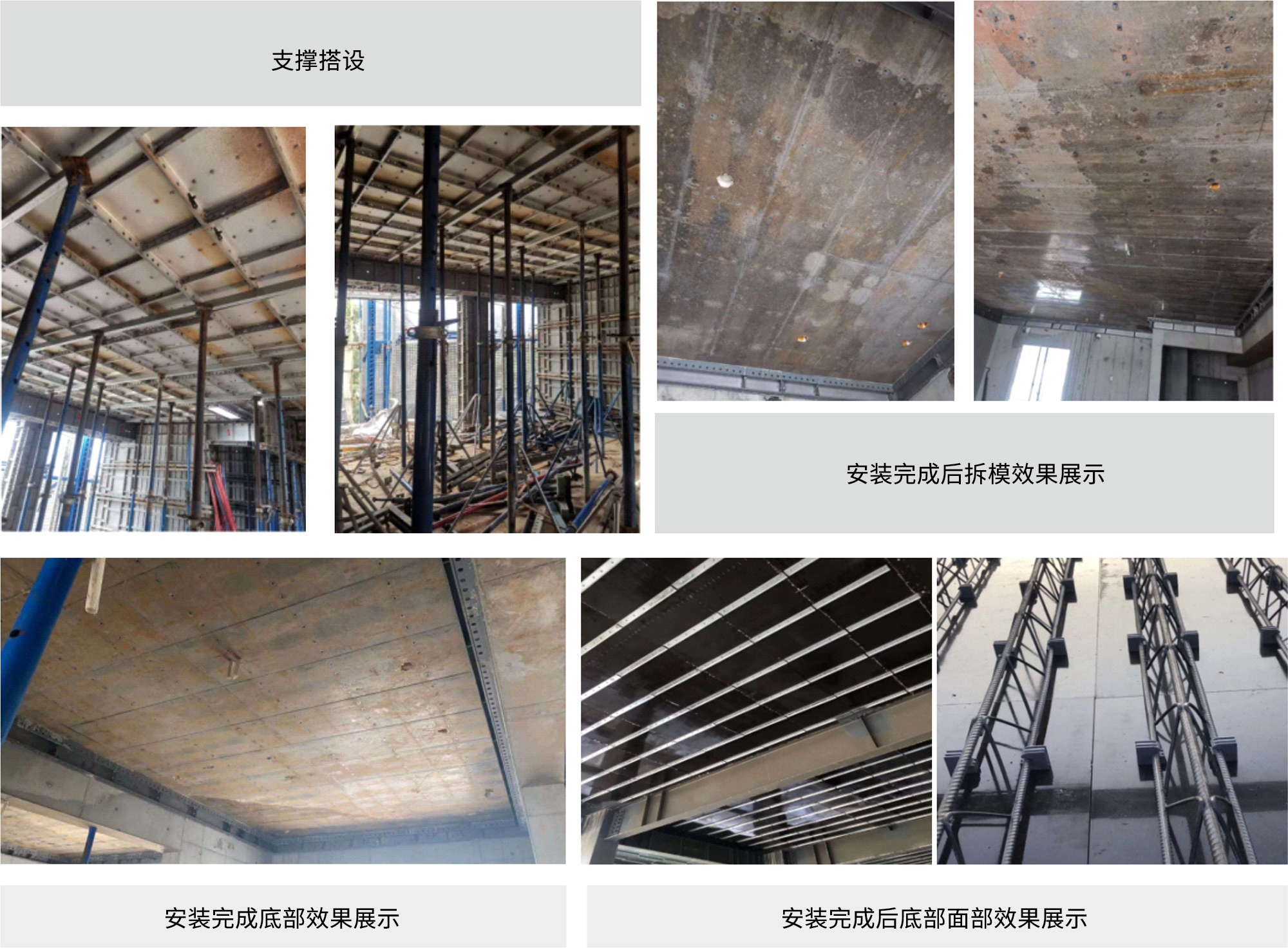 無支撐施工跨度大,現(xiàn)場澆筑時超出板型最大無支??缍葧r僅需在板跨中加設一道臨時支撐極大降低了現(xiàn)場支撐成本 |